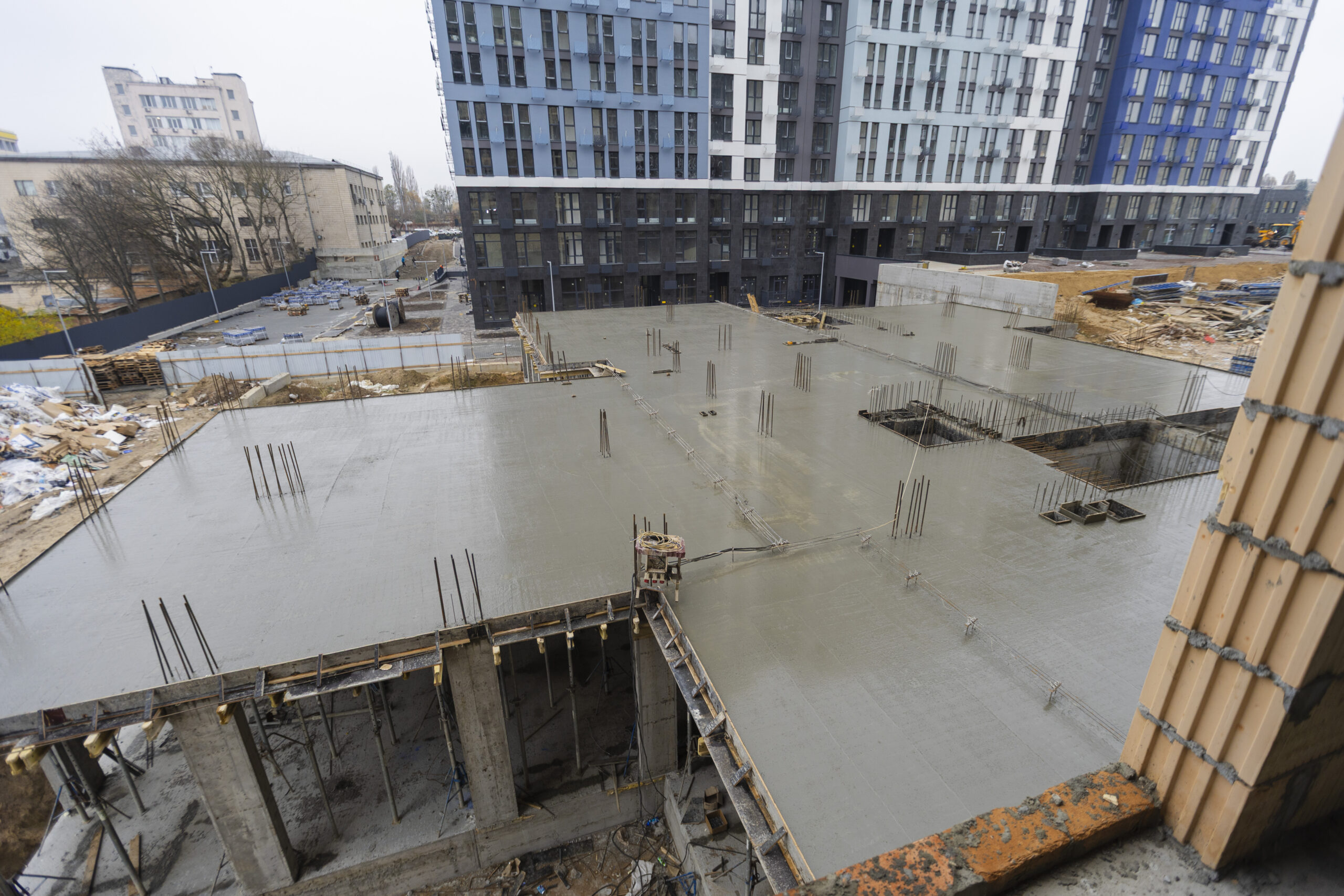 Будинок №2 Влаштування покрівлі – 99%. Монтаж металопластикових вікон та дверей – 99%. Улаштування фасадів - 99%. Сантехнічні роботи (квартири, МЗК, підвал) - 99% Вентиляція і димовидалення - 95% Система протипожежного захисту - 99% Електромонтажні роботи (квартири, МЗК, підвал) - 99%. Влаштування благоустрою та озеленення - 97%. Будинок №3 Влаштування гідроізоляції цокольної підземної частини - 55% Улаштування монолітного каркасу - 99% Улаштування вхідних груп - 75%. Паркінг Влаштування гідроізоляції паркінгу – 99%. Вентиляція та димовидалення – 98%. Система протипожежного захисту – 98%. Улаштування розмітки паркінга - 98%. Монтаж дрібних металевих конструкцій - 99%. Влаштування благоустрою та озеленення - 97%